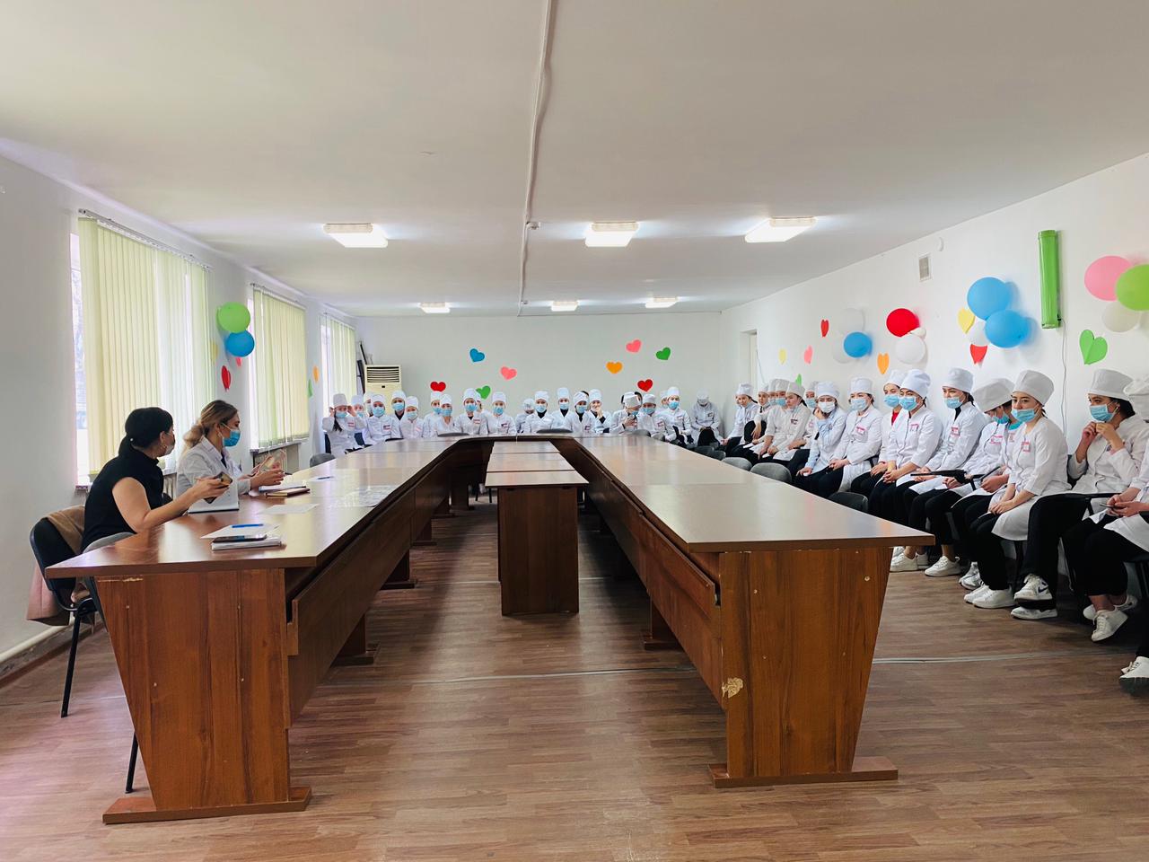 Преподаватели общепрофессиональных и специальных дисциплин Г.Молдабекова, П.Ерматова, З.Абдукасымова, З.Мухамбетова и Е.Кашкинова организовали и провели конкурс «Лучший фельдшер-2022» среди обучающихся выпускных курсов специальности «Лечебное дело» квалификации «Фельдшер», приуроченный к «7 апреля — Всемирному дню здоровья». Цель конкурса — подготовка современного, конкурентноспособного, высокопрофессионального специалиста. Конкурс состоял из четырех этапов. На первом этапе каждый конкурсант защищает видеопрезентацию на...Подробнее