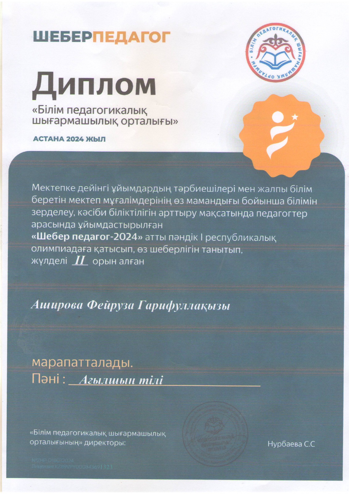 2024 жылдың 04-16 сәуір аралығында «Білім педагогикалық шығармашылық орталығының» ұйымдастыруымен өткен «Шебер педагог-2024» атты педагогтерге арналған пәндік I Республикалық олимпиадаға колледжімізден 6 оқытушымыз қатысып, өз білімі мен шеберлігін танытып, жүлделі орындарға ие болды. I-орын — Г.А.Дарибаева II- орын — Ф.Г.Аширова, К.Х.Садырбаева, Д.Б.Егембердиева III- орын — З.Құрманғазықызы, Э.С.Нурмаханбетова Колледж ұжымы жеңімпаздарға жас ұрпақты оқыту мен тәрбиелеу...Подробнее