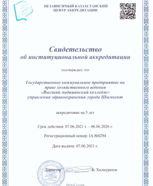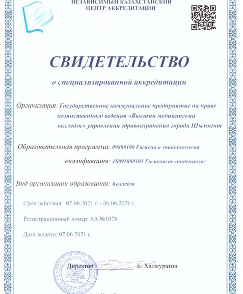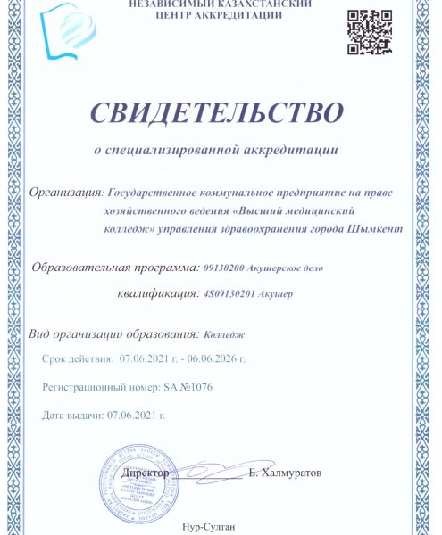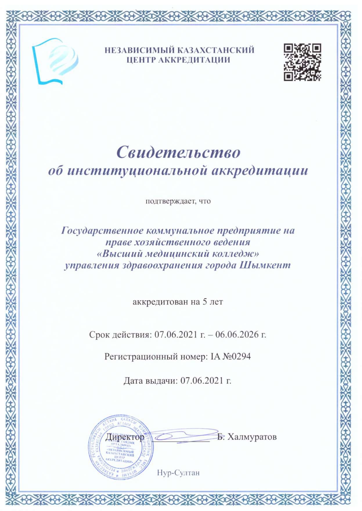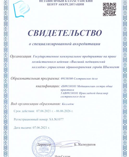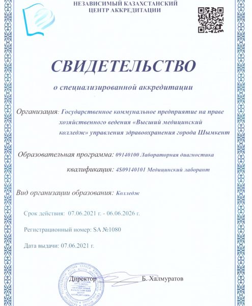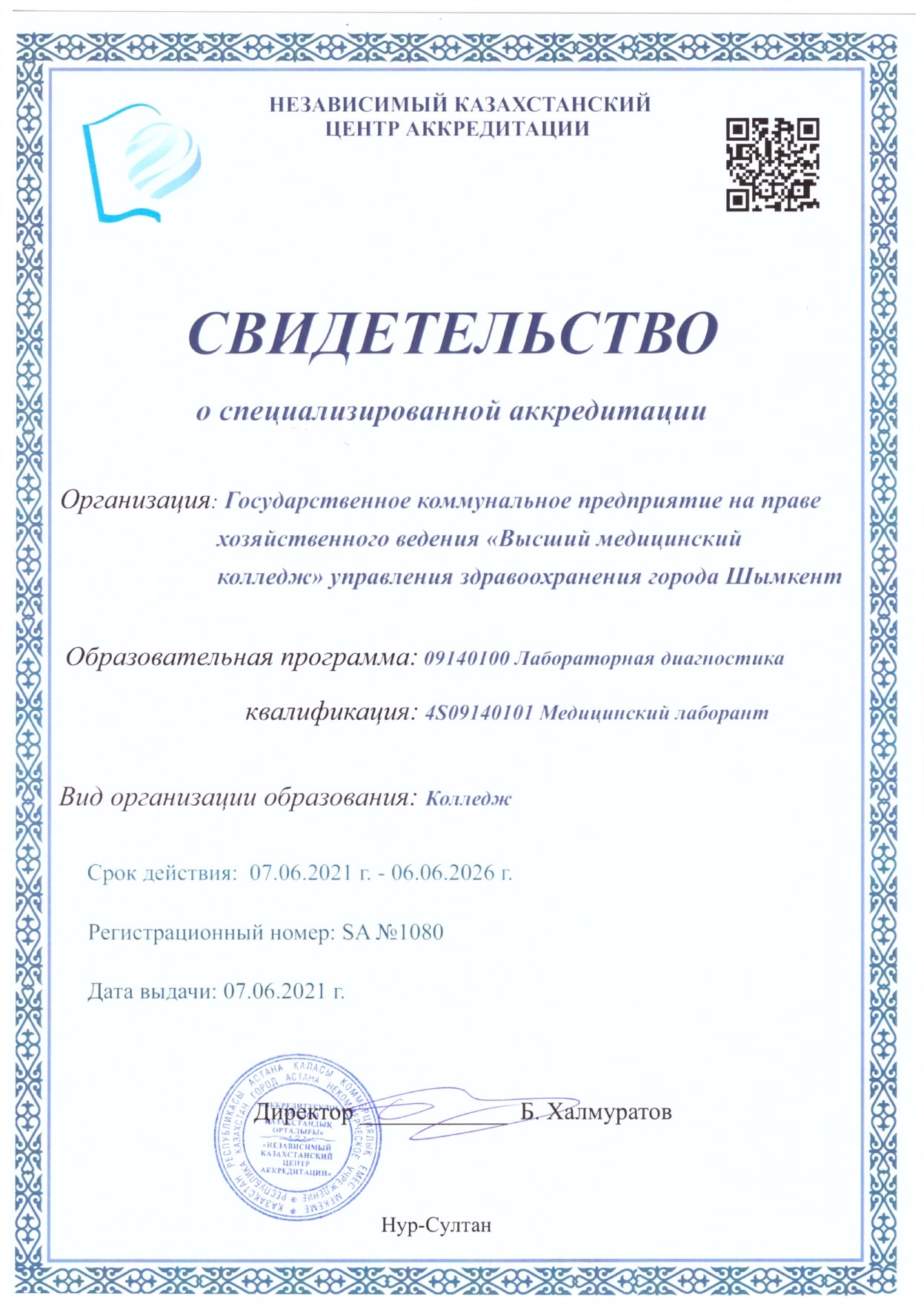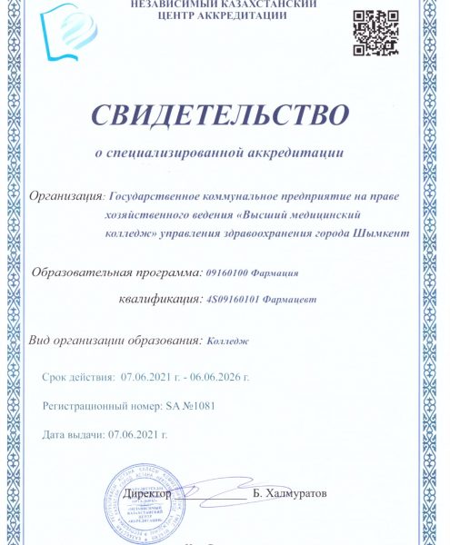 07 июня 2021 года Аккредитационным Советом Независимого казахстанского центра аккредитации (НКЦА) было вынесено решение: