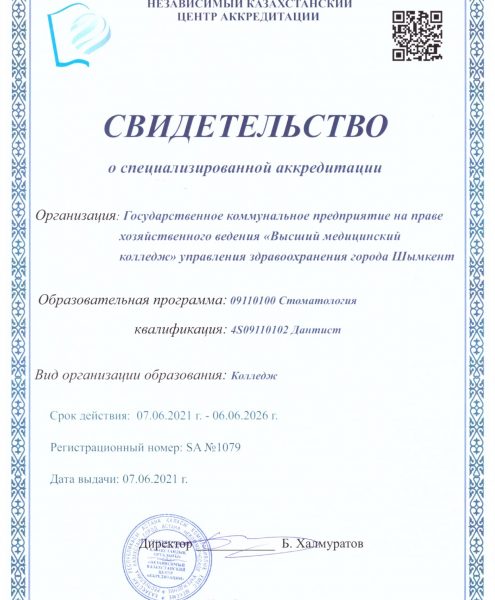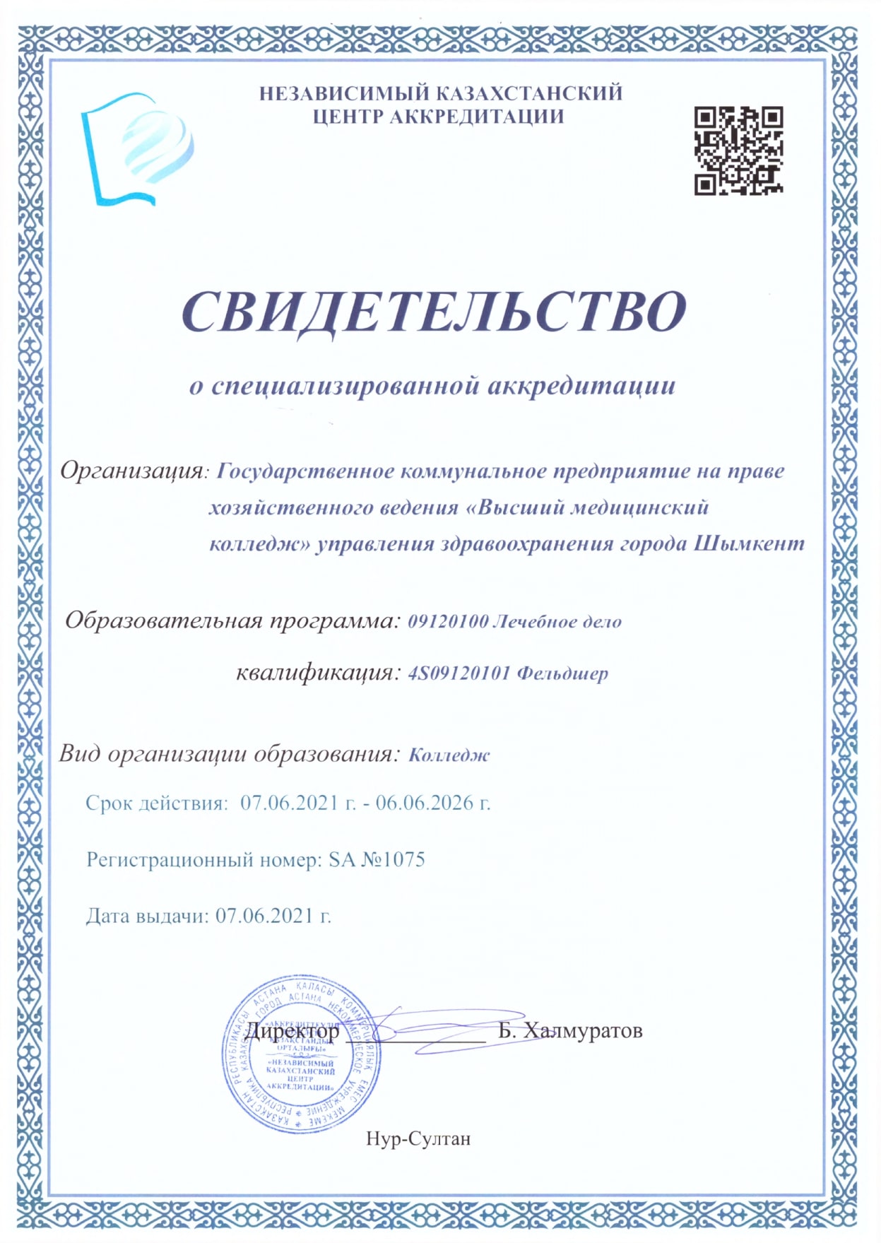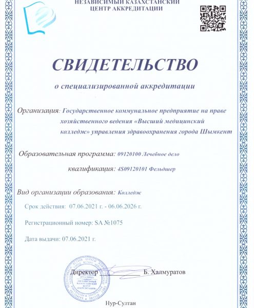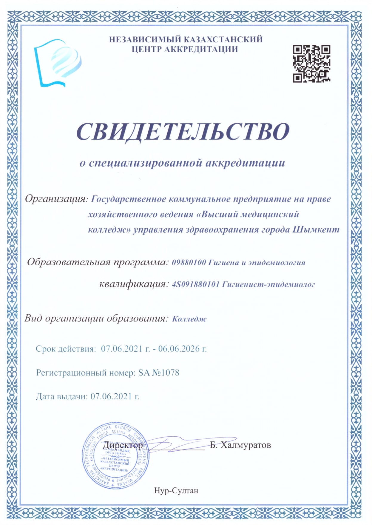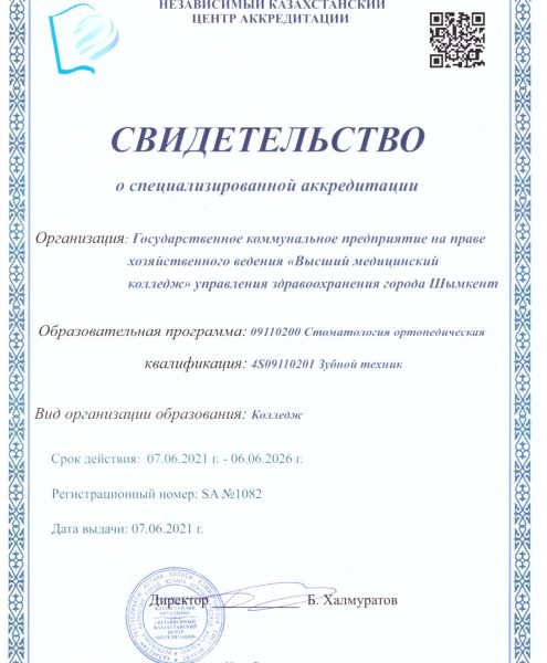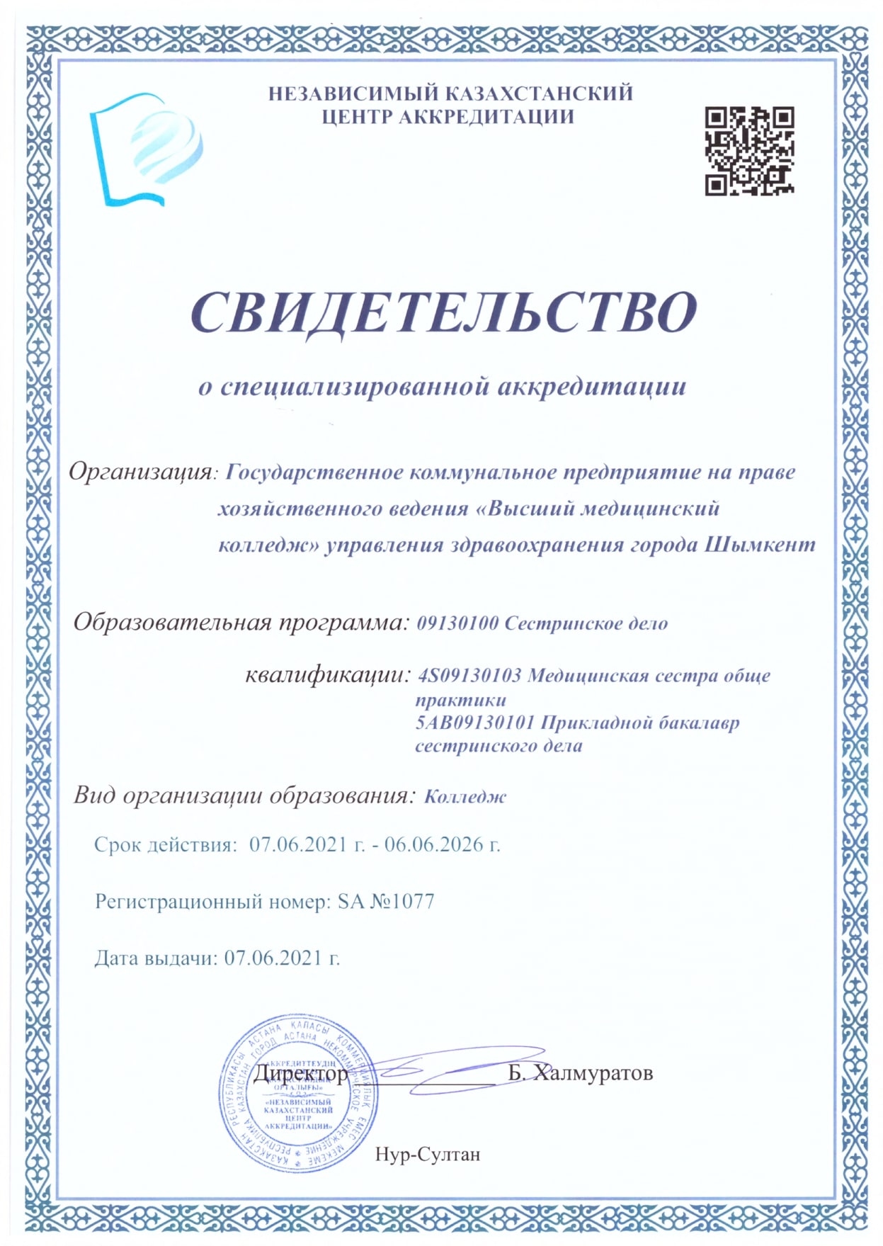 07 июня 2021 года Аккредитационным Советом Независимого казахстанского центра аккредитации (НКЦА) было вынесено решение: