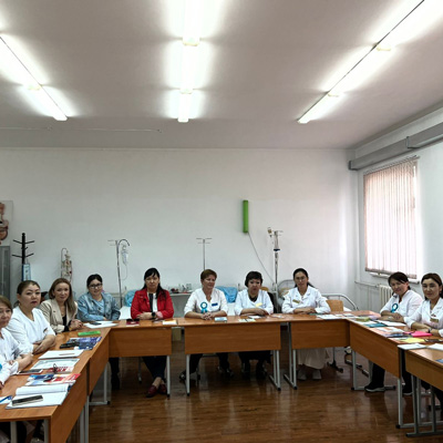 The round table meeting was attended by the medical representative of the pharmaceutical company “SERVIER” Z. Izbasarova, general practioners of the city polyclinic No.3 A. Orazova, S. Ispulova, heads of departments A.Bayanbayeva, G.Daurenbekova and teachers of the CMA.