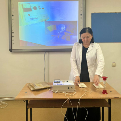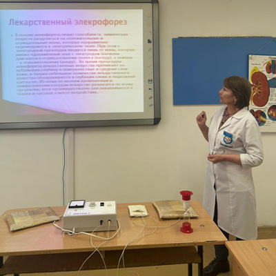 On April 6 the teachers of the CMA V. Myrzandaeva and N. Mantayeva held a round table among teachers of therapeutic disciplines on the topic “Medicinal electrophoresis. Indications and contraindications”. During the round table, the teachers provided information about the relevance of drug electrophoresis for the rehabilitation of patients, its advantages over other methods of treatment and demonstrated the procedure on the device “STREAM – 1.