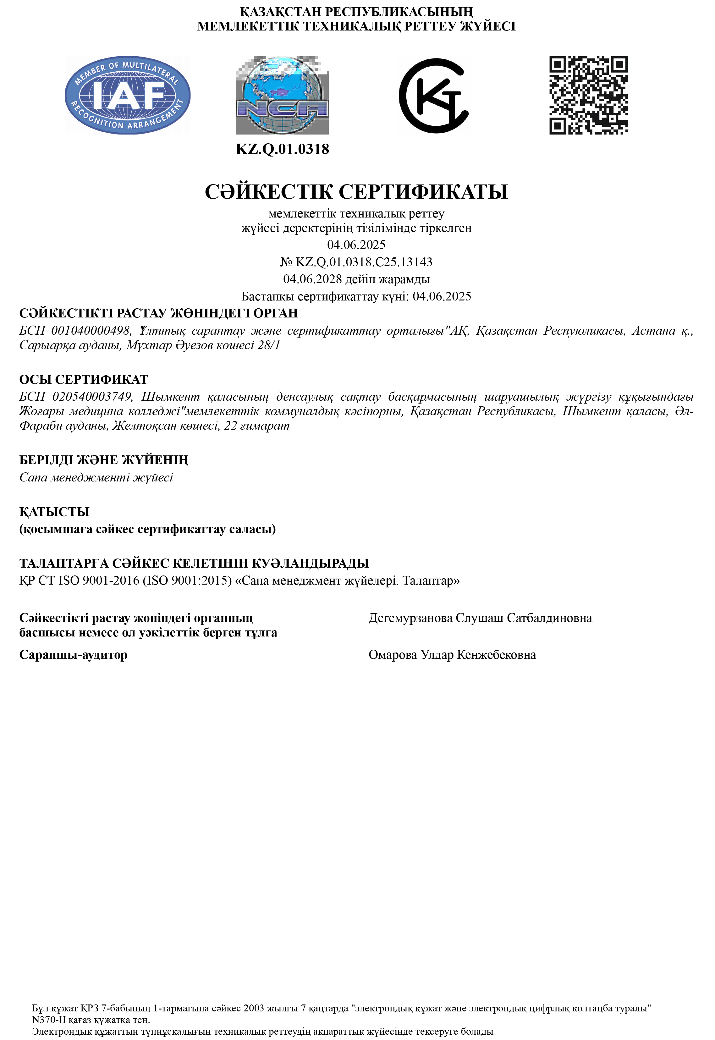 ШЖҚ «Жоғары медицина колледжі» МКК
