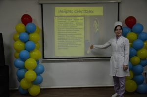 На классном часе обучающиеся говорили об основателе сестринской профессии  Флоренс Найтингейл, рассказали о своем видении места сестринской профессии в обществе, почему выбрали именно это учебное заведение и эту профессию, какой вклад они могут внести в развитие страны, работая в этой сфере, исполнили стихи на казахском, русском и турецком языках о людях в белых халатах. Показывали сцену о роли медсестры. В конце классного часа обучающиеся исполнили песню «Ақ халатты абзал жандар».