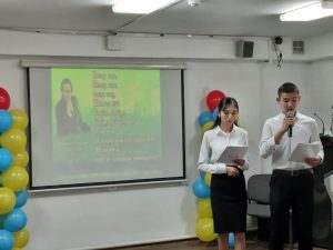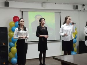 В третий день декады согласно плана под руководством преподавателей профессионального казахского языка А.Елибаевой и К.Сабыркуловой был проведен литературный вечер «Үш бақытым», посвященный творчеству великого казахского акына Мукагали Макатаева. Обучающиеся I курса читали стихи Мукагали Макатаева, рассказали о жизненном и творческом пути поэта, проникновенно исполнили песни, написанные на стихи поэта.